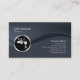 Det här enkla affärskortet för rörmokare för elegant och professionell har en svart bakgrund för jet. En svartpunktsvåg strömmar från den lämnat till högerna och delar upp kortet i två delar. En cirkelformad krometikettikon sitter på den här vågen, på kortets lämnat sida, medan ditt namn och din titel visas på den övre lämnat sidan och namn och kontaktuppgifter visas på grund-högerna. Designad för entreprenör, konstruktion, hemreparation, handyman, DIY, reparatör, rörmokare, rörmokare, rengörare av bassäng, takare, kvalificerade fackområden.