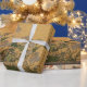 Den antika skärm som har blivit krysantemum och peonier är centrum för uppmärksamheten i denna lyxomslagring på 6 fot papper. Antikala tyger med morsa, höst löv och en lackerad platta tillför andra intressen till kollaget. Utformningen är tillräckligt neutralt för använda för alla tillfälle, men har bara tillräckligt med guld för att göra den till ett minnesvärt presentkompaket för gyllene anniversarier, Thanksgiving eller till och med en gåva till uppvärmningen av hushållen.