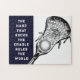 Rolig lacrosspussel med originell citat, laxklubba och boll.