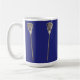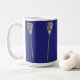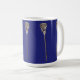 Kreativ lacrosse sport mugg med lax stick och boll design mönster på fält av royal blue.