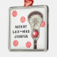 Den ursprungliga prydnadsjulklappen "Merry Lax-mas" för helgdag av lacrosse-spelare, tränare eller lagspelare. Så här anpassar du redigeringstext.