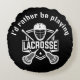 Lacrosse Design Round Pillow with customizable text and background color.