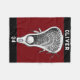 Lacrosse-spelare eller bussfilt med stift-och-boll-design på en maronbakgrund. Om du vill anpassa redigeringstexten så att du lägger till namn och lagnummer för den lax spelaren.
