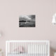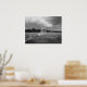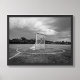A dramatic black and white photograph of a lacrosse goal and net on an open field under moody storm clouds. The monochromatic treatment gives this sports image a timeless, artistic feel perfect for a teen bedroom, modern game room, or lacrosse player's hangout space. The frame shown in the cover photo is for styling only and is not included.