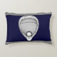 Creative lacrosse goalie pillow featuring lax goalie stick-and-ball design on navy background. To personalize add name of lax goalie or otherwise customize.