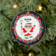 Creative lacrosse Christmas holiday keepsake gift featuring funny cute Mrs Claus lacrosse player with a lax stick. To personalize edit text to add name and the year.