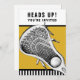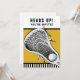 Lacrosse party eller event inbjudan med kreativ lax-stift på guld-bakgrunden.
