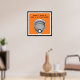 Motiverande lacrosse-målvaktsaffisch med laxklubba på orange bakgrund.