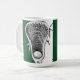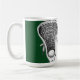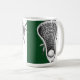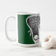 Kreativ lacrosse sport mugg med lax sticks på gröntens bakgrund.