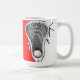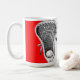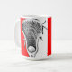 Kreativ lacrosse mugg med lax stift på röd bakgrund.