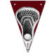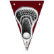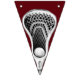 Coola: party eller händelsebanderoll med lax stick och boll på en maronbakgrund.