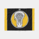 Idrottsfilt i Lacrosse med lätthanterlig lacrosse-stift på gult och svart bakgrund. Redigera text om du vill lägga till numret för en lapp spelare eller namn.