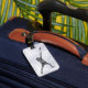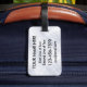 märkre av anpassade bagage/väska med fram- och baksida. Ändra bara texten med hjälp av textrutorna i avsnittet "PERSONALISERA IT" till högerna på designen. Om du vill växla mellan bagagemärkets framsida och baksida användor du de små ikonerna under huvudbilden.