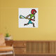 Lacrosse player springa med boll. En roligt grafik för lacrosse fläkt och spelare.