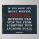 Ett motivationslakrosse poster, på uppslivet blådenim, med röda och vita bokstäver. (Den här inspirerande lacrosse-utskriften ingår i en serie på 10 poster med lacrosse-citattecken i den här denim-designen.) Lacrosse-citatet på den här idrotten poster: "Om du har högernas mentala inställning kan ingenting hindra dig från att uppnå dina lacrosse-mål." ~ Felicity Luckey..