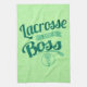Skriptsymboler i grönt med texten LACROSSE LIKE A CHEF och en lacrosse stick och boll grafik.