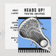 Lacrosse-fest eller evenemangsinbjudningar med kreativ laxklubbsdesign på ljusblå bakgrund.