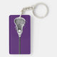 Coolt lacrosse väskor eller bagage märke med lax pinne nyckelring. Lägg till text för att anpassa för din favorit lila team lacrosse spelare eller lax tränare.