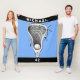 Unik lacrosse-filt med en slapp-och-boll-design på en ljusblå bakgrund. Redigera text om du vill lägga till lacrosse-spelarens namn och teamnummer.