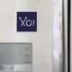 Kreativets lacrosse-presentmagnet för lagspelare, tränare eller sportfantaster, med lax sticks xo! på marin blå bakgrund.