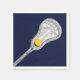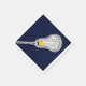 Kreativ lacrosse party eller flickors idrottsevenemang napkins med lax stick och boll på fält i marblått.