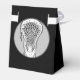 Kreativet lacrosse party eller sportevenemangets favoritbox med lax-stift på svart bakgrund. Redigera text för att anpassa.