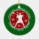 Lacrossejulgranprydnad. God jul och gott nytt år. Perfekt dekoration som lite ger din jul a av den lacrosseande. Lacrossespelaredesign med snöflingor. Dubbelsidig prydnad: En sida - som är röd med grönt, centrera. Motsatssida - grönt med rött centrerar.
