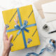Unikt lacrosspresentpapper med laxklubba och boll-illustration på gul bakgrund för lacrossspelare, fest, tränare eller sportteamfans.