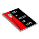 Lacross slogan och laxpinne-grafik på röd anteckningsbok. För att anpassa, lägg till namn.