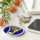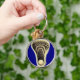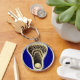 Unikt lacrosse-nyckelringpresent med laxpinne-design på kunglig blå bakgrund för spelare, lagtränare eller sportfantast.