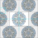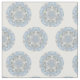 Detta tyg har en lacy blåttabstraktdesign att cirkla i ett upprepande tryck som är non-riktnings. Abstrakten liknar en snöflinga. Ljust - blått med blueish gråa brytningar.