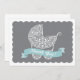 En gullig snörestilbarnvagn (pram/barnvagn) som dekoreras med bebisfåglar och, virvlar runt av vines avslutar detta moderna baby showertack. Original- illustration vid pj_design. Behaga kontrollen mitt lager för mer något liknande detta.
