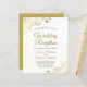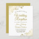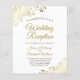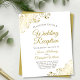 Dessa prisvärda, budgetvänliga inbjudningar är designade för gäster som är inbjudna till bröllopsmottagningen men inte till ceremonin. Utformningen har en vit bakgrund med ornerade guld-kyler i hörnen. I typografin ingår finare-skriptbokstäver för ett stil som är enkelt och elegant vid gång. Perfektens val för elegans, klass, stil och skönhet i en budget.