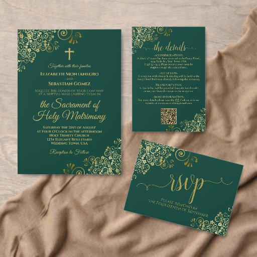 Emerald Green with Gold Frills Elegant Wedding Designad av Cat Ritchie