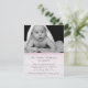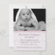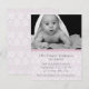 Söt anpassningsbar foto baby födelsemeddelande som publiceras i ett vitt och rosa lacy-utseende. Ett foto av anpassningsbar baby dekorerar överkanten på det platta kortet, med en dekorativ rosa-scallop, nedan. Mörk grått-text är redo att personanpassa, med din baby födelseinformation. Söt och snyggt sätt att meddela er flicka, vänner och familj.