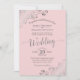 Den här vackra bröllopsinbjudan har en enkel utformning av eleganten med lacy grått-manusgrafi på blekens rosa-bakgrund och fadliga grått-faux-folie i hörnen i silver. Ordalydelsen är formell, men utformningen är modern och snyggten.