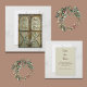 Lada dörrar och en floristisk ros krans presenteras i denna rustika västliga design. Dörrpanelerna har parets namn och frasen, Spara datum. Baksidan har datum och info som kan redigeras med din info. Matchar inbjudan till lada dörr bröllop.