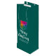 Anpassa din text Glad jul Gott nytt år Handskriven manus Familjenamn Lägg till ditt företag Företagets logotyp eller bild Foto här Elegant modern mall Tallträdsgrön & Vit Glansig presentpåse för vin.