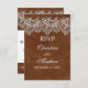 © 2013 Socialite Designs. Vårt unika svarskort har en design med läder- och spetsutseende, perfekt för alla landsby- eller rusticerade bröllop eller fester. En elegant kombination av manliga och kvinnliga designelement för en romantisk fest. OBS: SPETSEN OCH LÄDRET ÄR UTTRYCK SOM ÄR UTRYCKTA PÅ INBJUDAN OCH ÄR INTE ÄKTA. Om du behöver HJÄLP med att anpassa eller behöver ytterligare bröllopsprodukter med denna design, vänligen kontakta Socialite Designs.