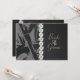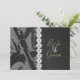 Den främre axeln och hjulet på en motorcykel i gråskala utgör den vänstra kanten på framsidan av denna bröllopsinbjudan perfekt för motorcykelpar. Den högra kanten har utseendet av svart läder. En enkel rad tusenskönor skiljer de två halvorna åt. En rad med samma blommor pryder baksidan av inbjudan. All anpassningsbar text kan enkelt ändras för att passa dina egna behov.