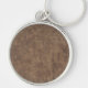 Läderblått Tartan Fabric Crokodile Skin Rund Silverfärgad Nyckelring