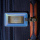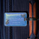 Vattenfärgsdesign. Skivblått, läderutseendet bagage, väska och ryggsäckspappers märkre. Anpassa.