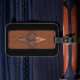 Läderutseende och monogrammat personlig bagagebricka
