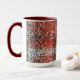 Imagem de pequenos quadrados tipo pixels que lembram uma parede de ladrilhos ou cerâmica vermelho, porém, com muitas manchas e pequenos respingos que parecem manchas e borrões de tinta spray.