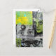 A mixed media collage made and photographed by Angelandspot in the year 2026 with vintage images from a magazine from 1968 on a colorful green and yellow background collage of various papers painted over to unify them before making the collage on top of that layer. The lady was injured in a car wreck in the story that was told and then I found some doctor's eyes in the same magazine from a different story so I combined them into a collage.