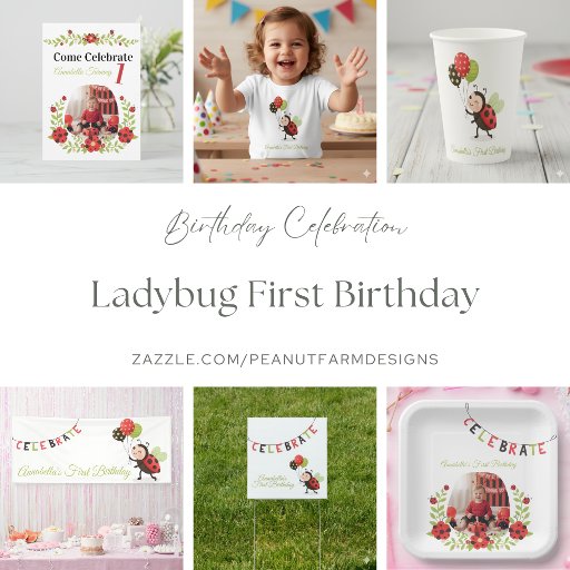 Celebrate a special first birthday with this adorable ladybug-themed invitation. Featuring a charming floral wreath with red flowers and cute ladybugs, this design is perfect for a sweet and festive celebration. Easily personalize with your little one's photo and party details, making it ideal for parents planning a memorable ladybug-themed party.