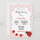 Babyduschinbjudan med söt ladybuktema och polkadotbakgrund.