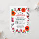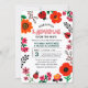Cute ladybug invitation, featuring bold colors, bright florals and adorable ladybugs. Modern and playful design.
