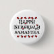 Ladybug-tema. Grattis på födelsedagen i svart versaltypsnitt med scrollsar och rödfläckade ladybugs-skäggsskalbaggar. Bilden har en rad av stegknoppar överst och grund. Anpassa med namn i svart teckensnitt.