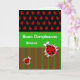 En modern födelsedagskortsdesign i kursiv stil som du kan anpassa till mottagaren. Färg-programmet är rött, grönt, svart och vitt, det finns koordinerande stegar och rand mönster på framsidan och ytterligare en nyckelbild inuti. Skriv in lådorna för att byta hälsning på framsidan "Buon complanno", namn och hälsning på insidan "Ti auguro una giornata piena di felicità e un anno pieno di gioia" (= "Önskar en dag av lycka och ett år fyllt av glädje"). Inuti finns det ett känsligt mönster av spridda hjärtan på blekens grönt. Oavsett om du kallar dem ladybuggar eller ladyfåglar är de symboler för lycka till, så skicka lite önskemål till någon du kärlek!